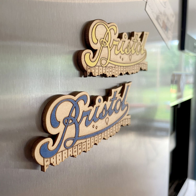 Bristol logo magnet souvenir, hand-painted, laser cut and etched